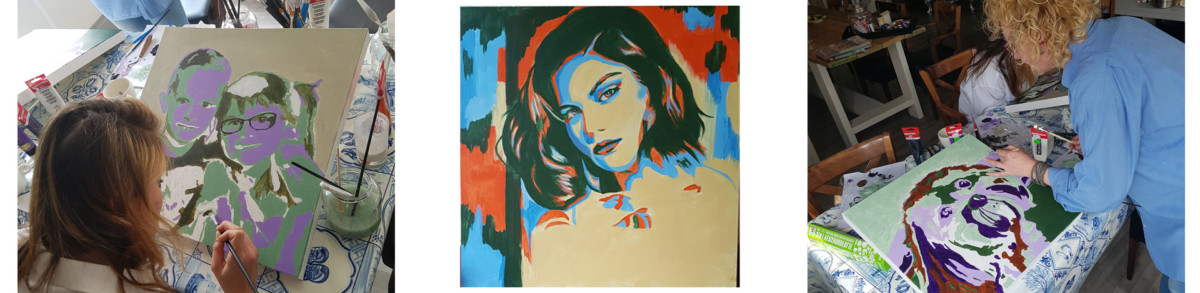 Een gezellige en creatieve dag voor bedrijfsuitjes, familie reünies, vriendinnendag of gewoon omdat je hier zin in hebt. In één dag kan je onder begeleiding van mij een persoonlijk schilderij maken in popart stijl. Een door jouw geschilderd schilderij naar voorbeeld van een door jouw aangeleverde foto naar eigen keuze. De gehele workshop is verzorgd van eten en drinken en alle schilder materialen zijn aanwezig. Er wordt gewerkt met acrylverf waar je lekker vlot mee aan de slag kan, niet ruikt en snel droogt en aan het einde van de dag ga je naar huis met een persoonlijk en zelf geschilderd schilderij.